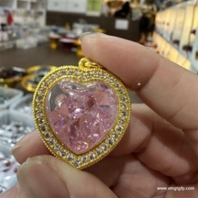 泰国佛牌 原庙恭请 阿赞喷 经文符管桃心 心锁 镶钻外壳 饰品吊坠