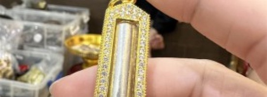 - 泰国佛牌 原庙恭请 阿赞喷 经文符管桃心 心锁 镶钻外壳 饰品吊坠