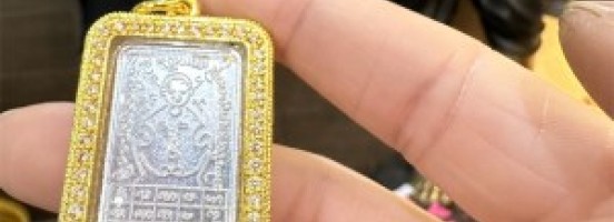 泰国佛牌 原庙恭请 阿赞喷 钱袋子佛牌 镶钻外壳 饰品吊坠 -